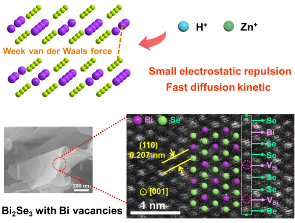 新闻网讯 近日,纺织服装学院非织造研究院宁新教授团队成员何宏伟、任晓川在柔性水系锌离子电池(ZIB)领域取得重大研究进展,相关成果以“Cation Defect-Engineered Boost Fast Kinetics of Two-Dimensional Topological Bi2Se3 Cathode for High-Performance Aqueous Zn-Ion Batteries”为题,在国际顶级期刊Advanced Materials(Adv. Mater., 2023, 2306269)发表,期刊影响因子29.4。beat365在线唯一官网为第一完成单位,何宏伟、任晓川与澳大利亚伍伦贡大学Nana Wang为共同通讯作者,该工作得到国家自然科学基金、国家重点研发计划、山东省自然科学基金,beat365在线唯一官网科研启动经费等的资助支持。