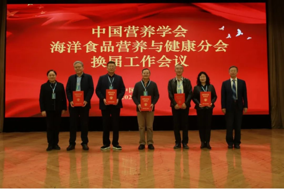 大会经过严格的换届程序,无记名投票选举产生了第二届委员会。马爱国教授代表新一届委员会,提出分会未来的工作目标和发展方向。肖荣充分肯定了第一届海洋食品营养与健康分会取得的成绩,并为马爱国颁发证书,鼓励新一届委员会为推动本专业领域的学术进步和营养科学的发展贡献力量。肖荣、马爱国共同为新当选的副主任委员颁发证书