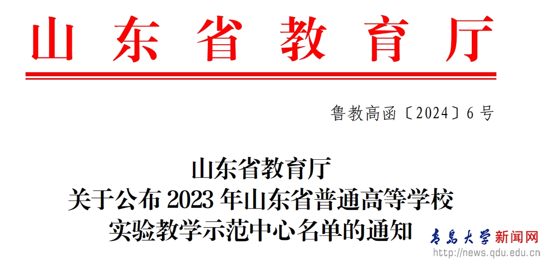 新闻网讯 近日,山东省教育厅公布了2023年山东省普通高等学校实验教学示范中心、山东省普通高等学校示范性实习(实训)基地名单。beat365纺织科学与工程虚拟仿真实验等3个实验教学中心获批山东省普通高等学校实验教学示范中心称号,beat365在线唯一官网附属医院等6个实习基地被评选为山东省普通高等学校示范性实习(实训)基地。
