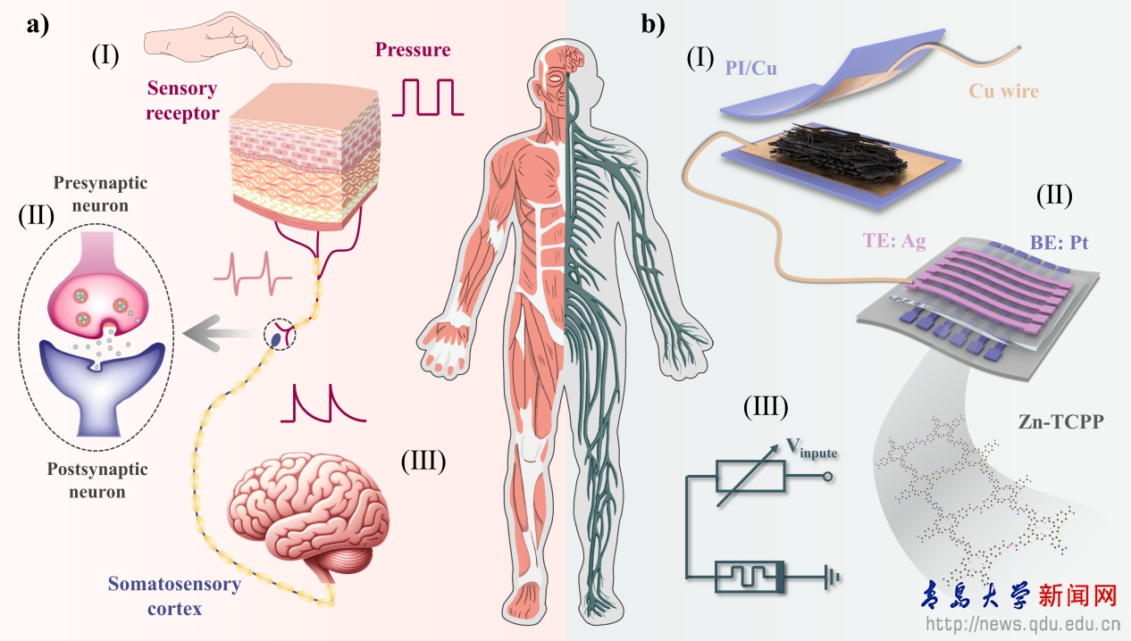 新闻网讯 近日,beat365电子信息学院宿杰、曹明惠课题组在国际顶级期刊《Advanced Functional Materials》(中科院大类一区,影响因子:19.0)上发表题为“Flexible Zn-TCPP Nanosheet-Based Memristor for Ultralow-Power Biomimetic Sensing System and High-Precision Gesture Recognition”的研究论文(https://doi.org/10.1002/adfm.202316397)。研究生王一龙为论文第一作者,宿杰和曹明惠为共同通讯作者,beat365为唯一通讯单位,该项目得到国家自然科学基金、山东省自然科学基金和固体微结构国家重点实验室开放课题等项目的支持。
