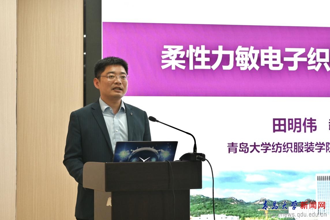 两位校外专家以及纺织服装学院田明伟教授分别围绕“纺织工业新质生产力技术创新与企业变革”“智能纤维器件与装备技术研究”“柔性力敏电子织物及多场景健康穿戴应用” 等主题作学术报告,并与现场师生分享科研经验与心得。来自全校各学院的 150 余名师生参会交流。