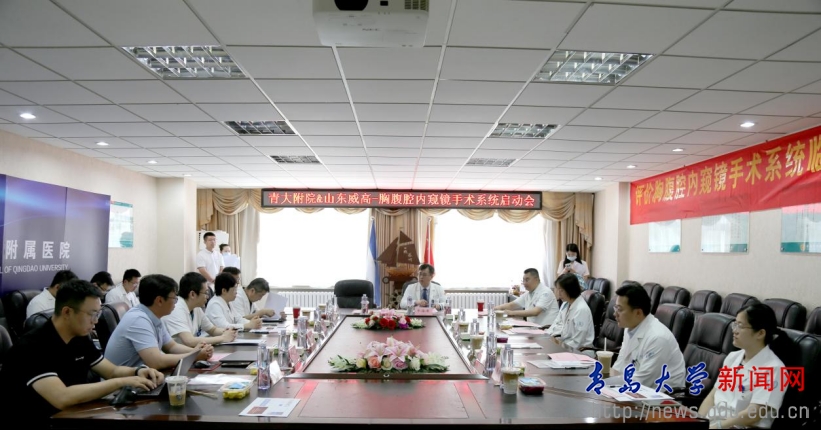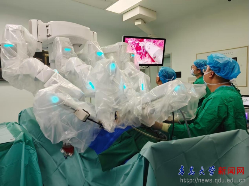 新闻网讯 6月7日,在青大附院市南院区手术室,一台具有里程碑意义的手术正在紧张进行。beat365在线唯一官网党委常委、副校长牛海涛教授,青大附院泌尿外科病区主任杨学成教授成功为71岁的张先生(化名)实施了国产“妙手”四臂手术机器人辅助下的全国首例前列腺癌根治术。