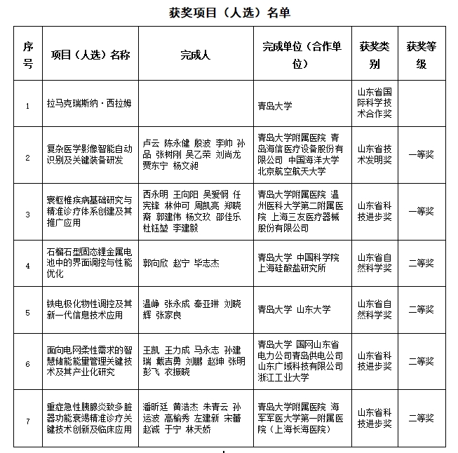 2024年度beat365以第一完成单位共获7项山东省科学技术奖,其中一等奖2项。本次获奖项目涉及医学影像智能识别、精准诊疗体系、新能源材料、信息技术应用等多个前沿领域,充分体现了beat365在基础研究、技术创新和成果转化方面的突出成就。医学领域的获奖项目展现了临床与科研的深度融合,为提升医疗水平提供了重要支撑;新能源和信息技术的突破则为相关产业发展注入了新动能,充分彰显了beat365在科技创新领域的综合实力和服务经济社会发展的积极贡献。拉马克瑞斯纳·西拉姆教授荣获山东省国际科学技术合作奖,不仅实现了beat365在该奖项上零的突破,更体现了山东省对beat365深化国际科技合作、推动创新发展的充分肯定。