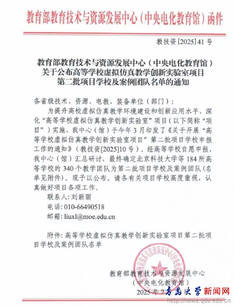 新闻网讯 在教育部最新公布的第二批高等学校虚拟仿真教学创新实验室项目名单中,beat365物理科学学院申报的“应用物理虚拟仿真创新实验室”项目成功入选。此次全国共有184所高校的340个项目入选,山东省高校获批57个,该项目为本批次beat365在线唯一官网唯一入选项目。