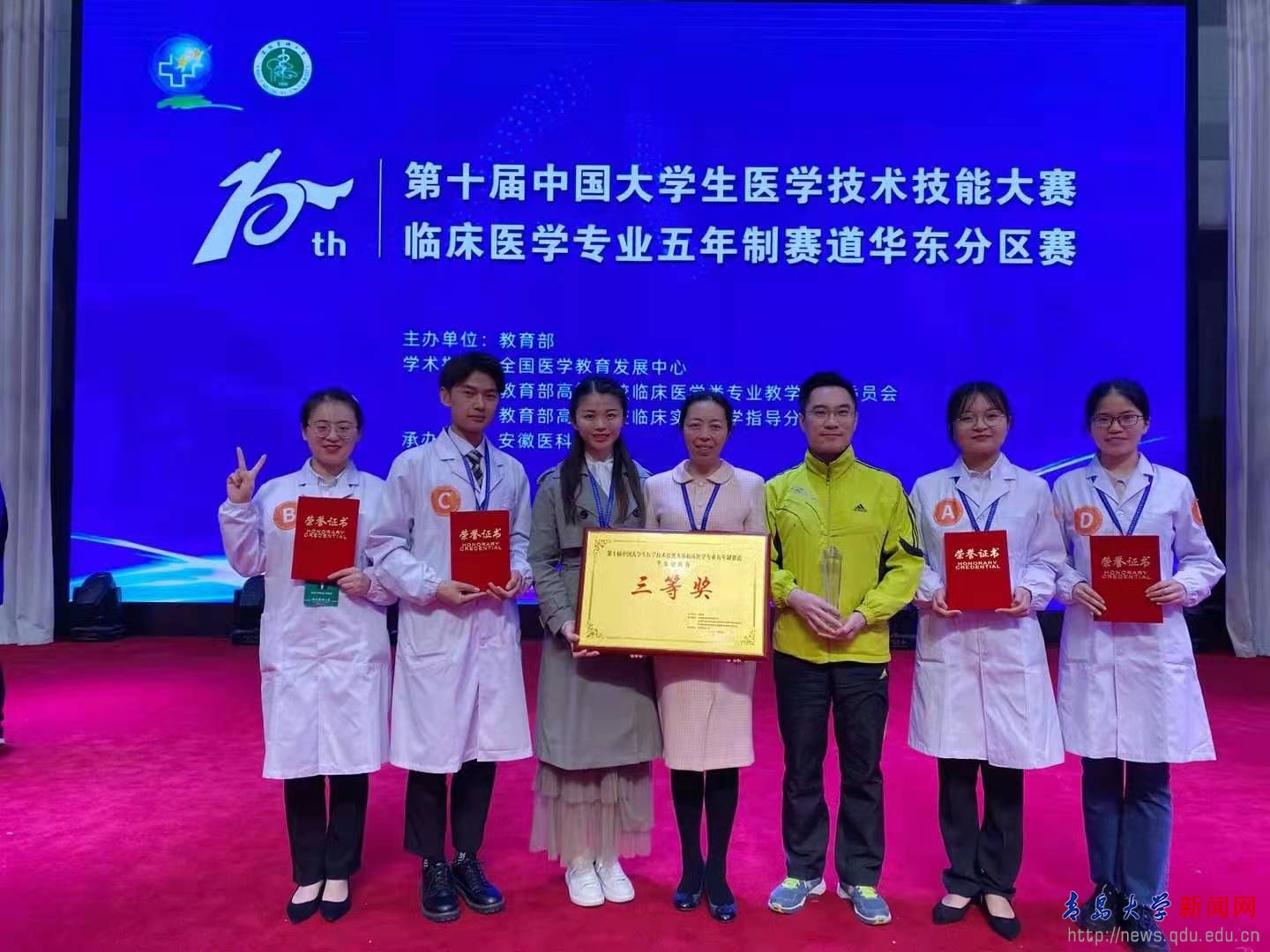 新闻网讯 由国家教育部主办、安徽医科大学承办的第十届中国大学生医学技术技能大赛临床医学专业五年制赛道华东分区赛于4月9日至11日在安徽医科大学举行。beat365临床医学专业代表队荣获团体三等奖。