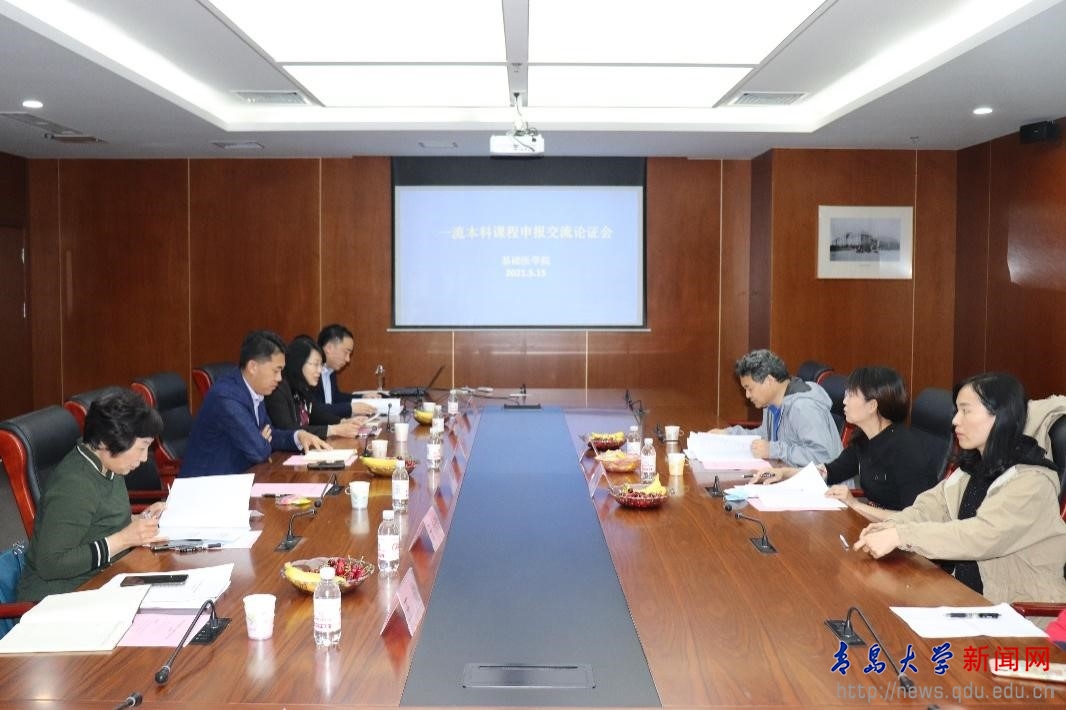 新闻网讯 5月15日下午,基础医学院在浩园A110会议室召开本科一流课程申报指导论证会。国家一流课程负责人中南大学基础医学院罗自强教授,山东大学基础医学院崔敏教授受邀出席会议。学院院长王建勋、副院长陈文芳、院长助理李尚勇,生理学课程组负责人陈蕾,病理生理学课程组负责人于小玲及相关教研室老师出席会议。会议由陈文芳主持。