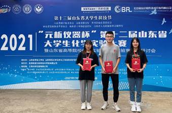 本次大赛旨在全面推进山东省普通高等学校化学实验教学改革和实验教学建设的精神,积极推动开展设计性、综合性、创新性实验教学,检验实验教学改革和教学建设的成果,提高大学生学习实验和从事实验研究的兴趣,引导和培养学生的综合能力和创新能力。大赛于2021年7月19日至22日在山东师范大学举行,共有来自省内33所高校的100余名学生参加了大赛。大赛历时3天,选手们在化学理论、化学实验安全、化学实验设计及操作等方面进行了激烈角逐。药学院由院长助理曹洁老师带队参加了本次比赛,参赛的3名选手在本届大赛中成果丰硕,张欢同学获大赛一等奖;朱丹妮、刘蕊同学获大赛二等奖。