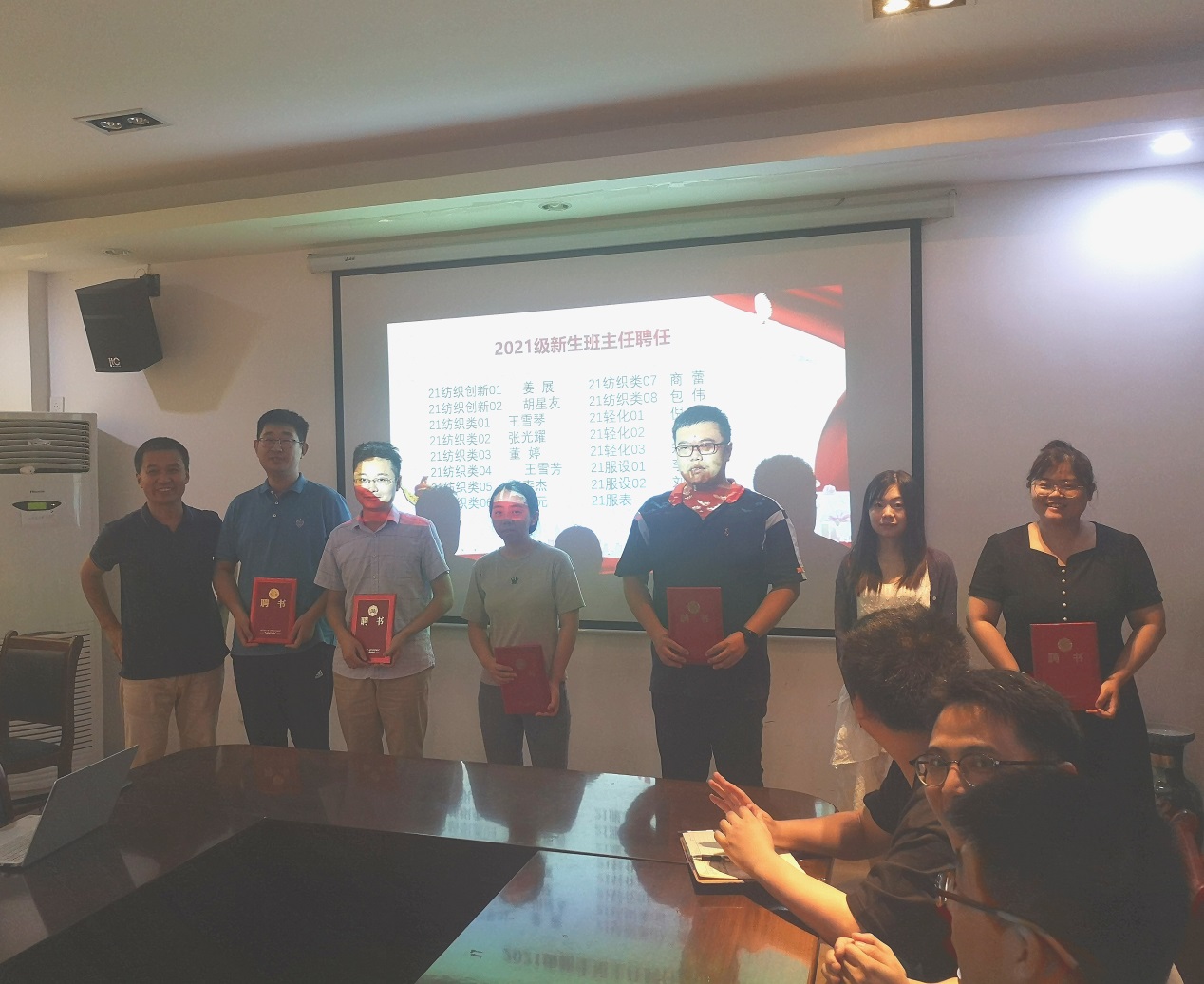 在2021级新生班主任聘任仪式,院长许长海为王雪琴等16名新生班主任颁发了聘书。