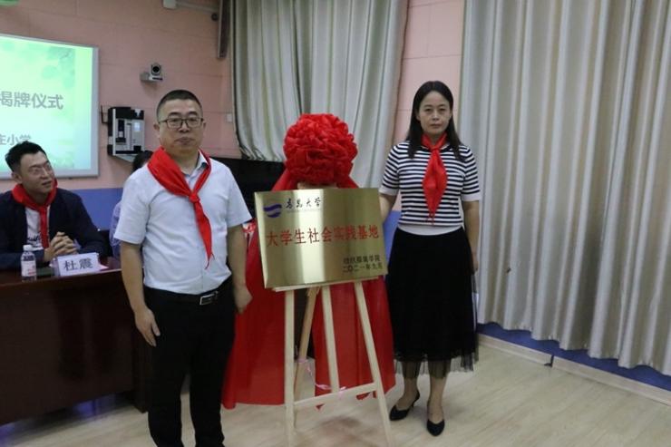 beat365在线唯一官网纺织服装学院党委副书记张敏、上马街道党工委宣统委员李莲芳为大学生社会实践基地揭牌