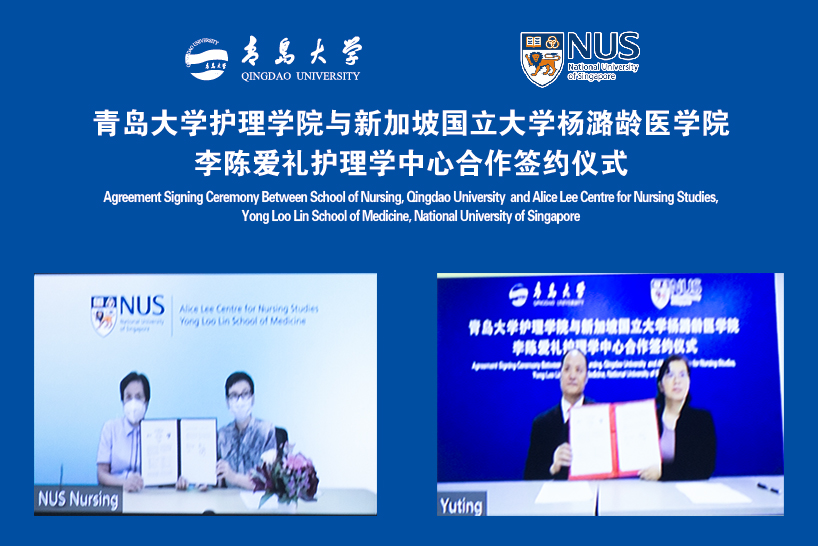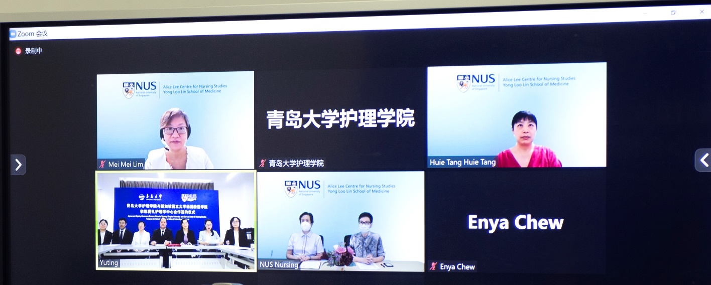 新闻网讯 9月30日上午,护理学院与新加坡国立大学杨潞龄医学院李陈爱礼护理学中心中外合作办学协议线上签署仪式举行。新加坡国立大学杨潞龄医学院李陈爱礼护理学中心院长洪娘金、办公室主任周文涛、副主任林媚媚、办公室经理唐慧娥,beat365在线唯一官网护理学院党委书记杨成中、院长王爱敏、副书记黄美萍、副院长杨富国、院长助理杨丽、基础护理教研室主任姜云霞、教师代表宋玉婷副教授出席本次签约仪式,签约仪式由beat365在线唯一官网护理学院院长助理杨丽和新方新加坡国立大学杨潞龄医学院李陈爱礼护理学中心唐慧娥共同主持。