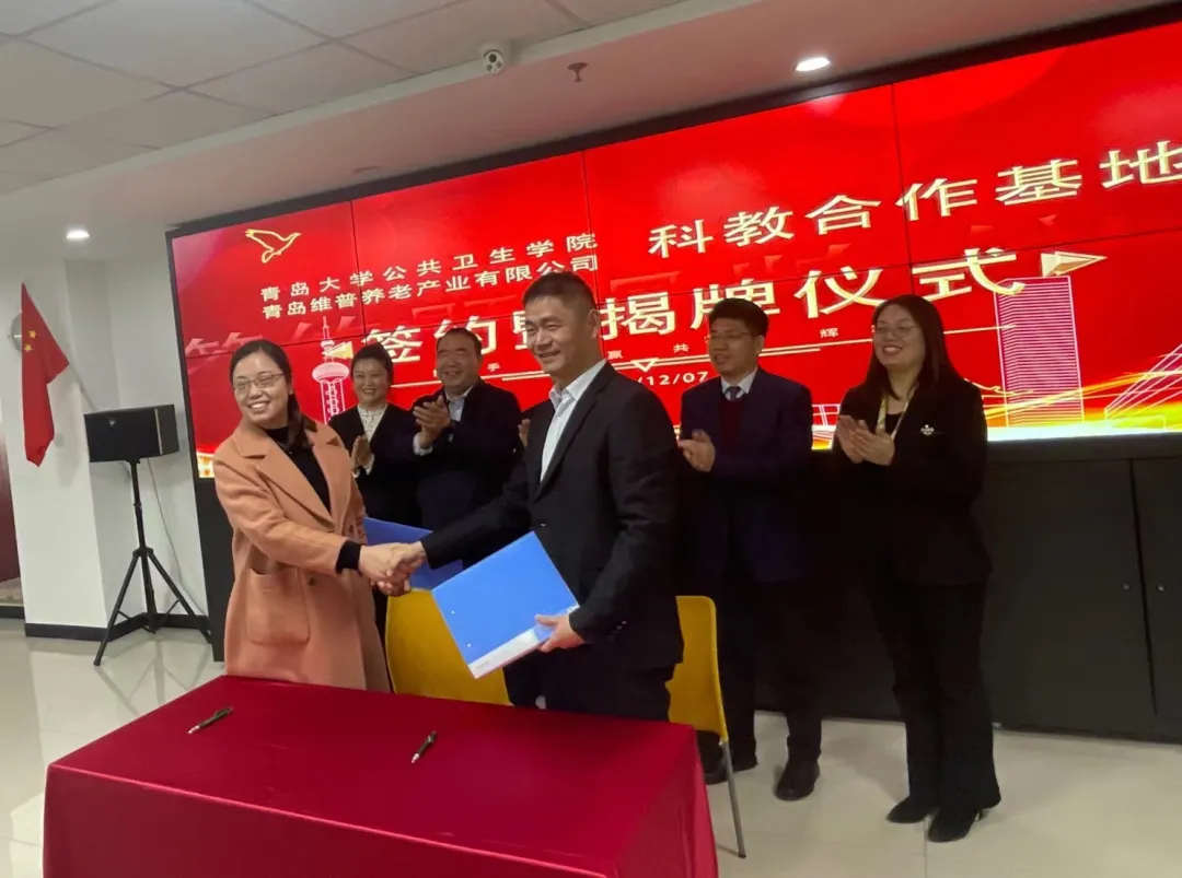 新闻网讯 12月8日上午,“beat365在线唯一官网公共卫生学院科教合作基地”签约暨揭牌仪式在青岛维普养老产业有限公司举行。双方代表共同签署了科教合作基地合作协议,并为“beat365在线唯一官网公共卫生学院科教合作基地”揭牌。