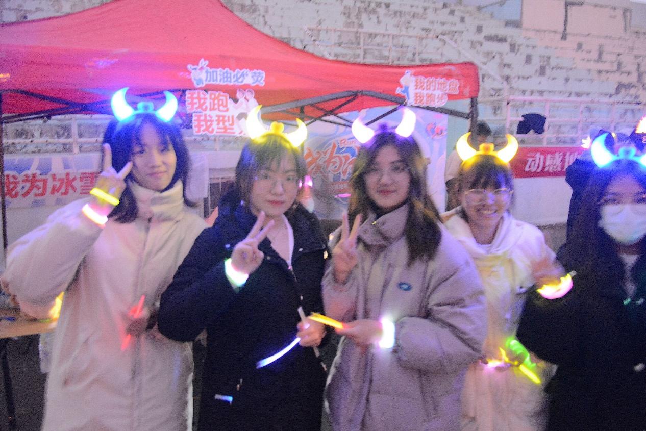 活动当天,工作人员给学生发放荧光棒,并提前摆好“请党放心 强国有我”“I❤QDU”“医梦为马 考研加油”等字样。雨后的微风虽带着凉意,却难掩大家的积极与热情,随着开跑指令发出,200余名参与学生相携出发,夜幕中的操场荧光闪耀,奔跑的人群在跑道上形成了亮丽的风景线。