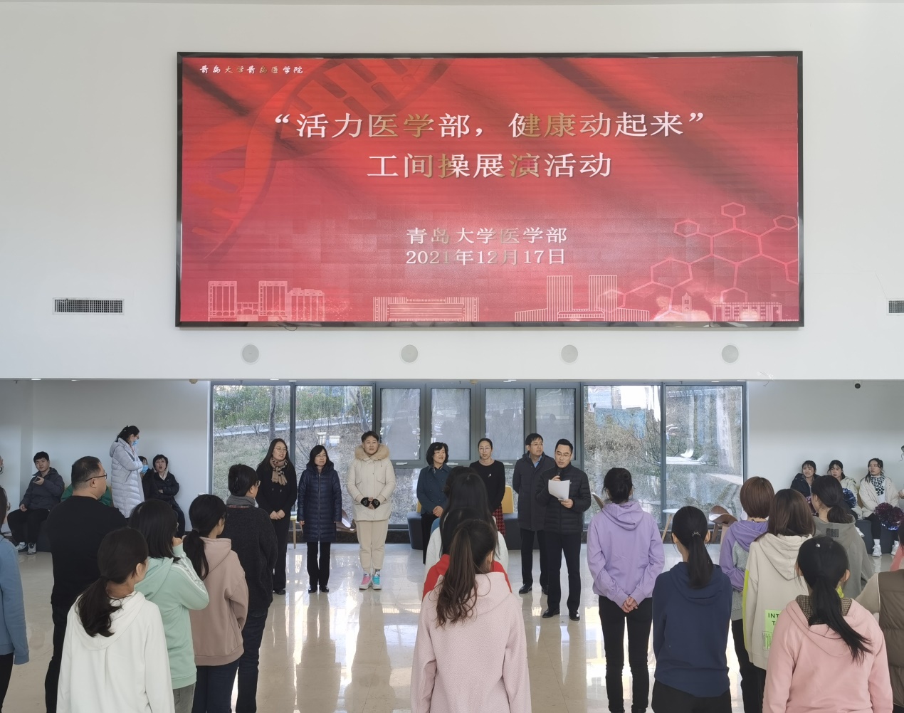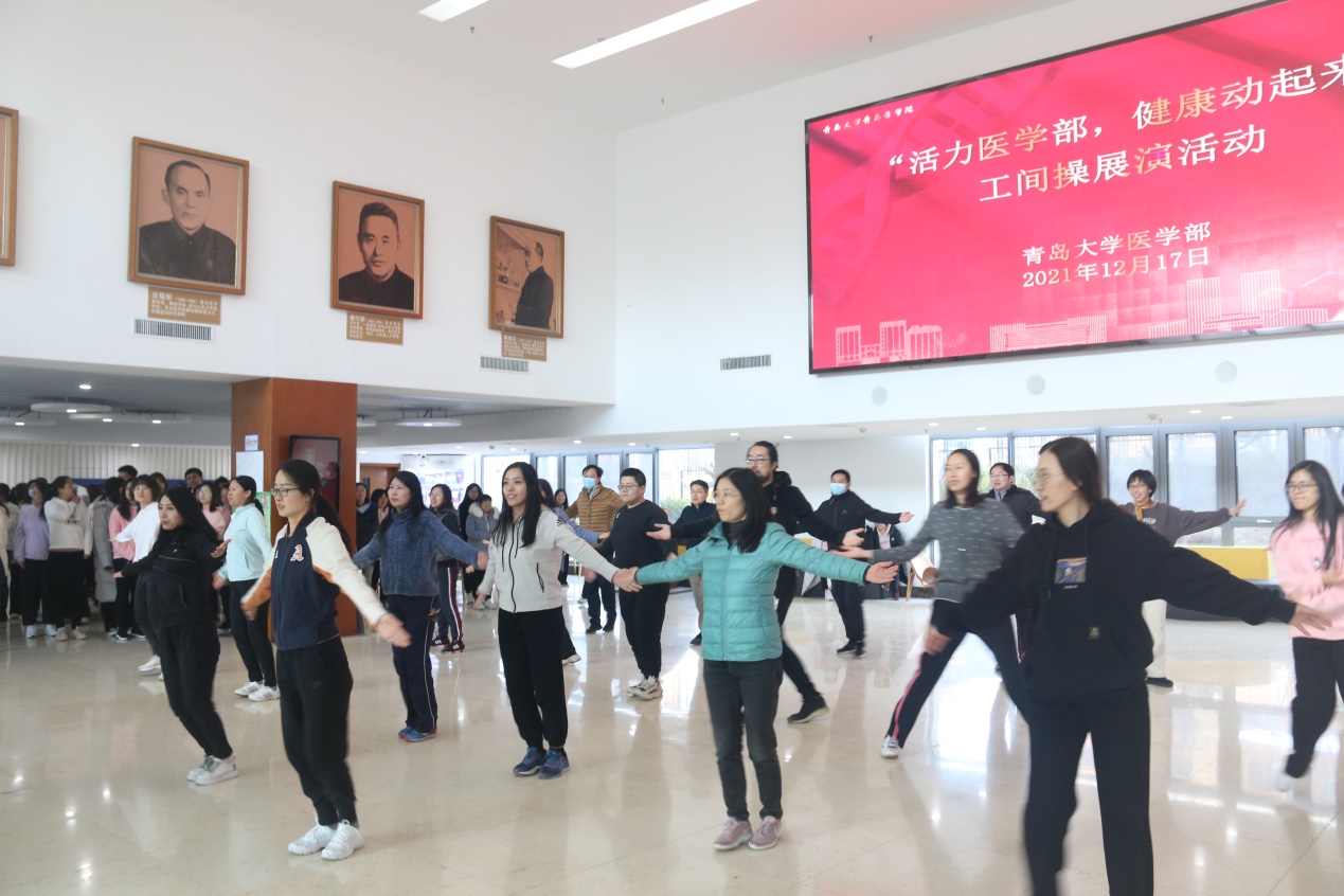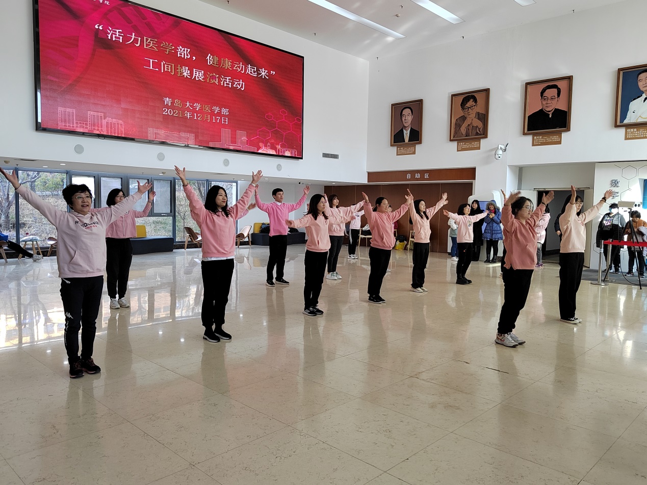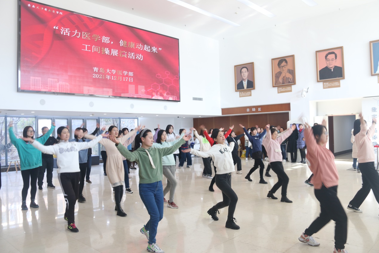 新闻网讯 12月17日12:30,医学部工会主办的“活力医学部,健康动起来”工间操展演活动在浩园医学部教育综合楼1楼大厅举行。