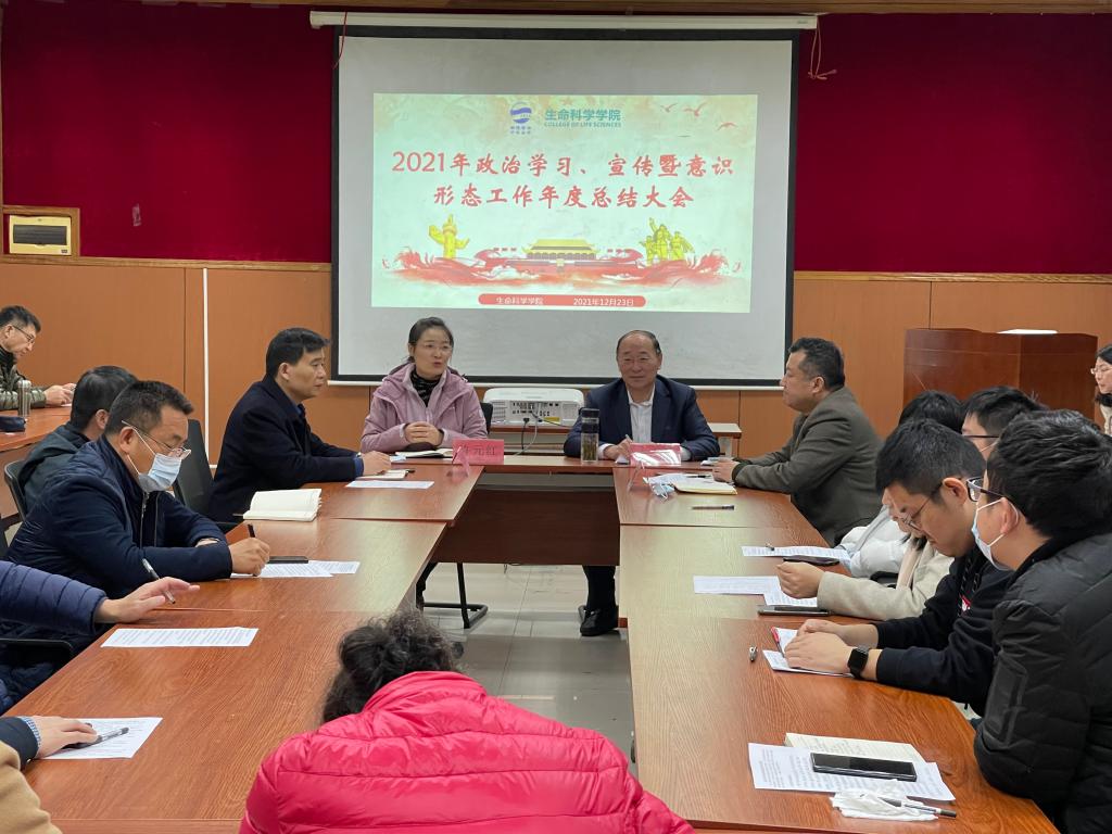 新闻网讯 近日,生命科学学院在博雅楼103会议室召开2021年度全院政治理论学习总结会。学院党委书记薛冰主持大会并领学。会议通过现场领学和测试的创新方式、方法,检验学院全体教职工全年的政治理论学习成果和效果,进一步调动了广大教职工积极参加政治学习和自觉提高学习质量的积极性、主动性。