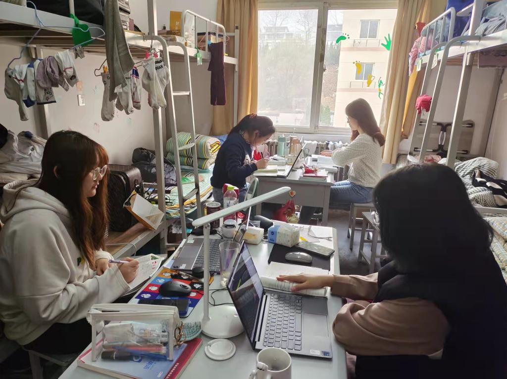 驻校辅导员老师不间断巡查学生宿舍,与学生深入交流,实时掌握学生的学习和生活状态,及时处理学生的急特情况,使学生能够正确对待疫情防控的要求和线上教学的实际情况,引导学生线上课堂学习和线下学习相结合确保学习效果。