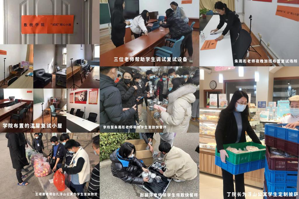 为保证2022届毕业生考研复试工作顺利进行,老师们积极协调在励行楼和浮山公寓布置了十间“试试顺心”复试小屋,购置了后置机位三脚架,根据复试时间段,制定合理有效预约制度。辅导员老师每天早晨在站点接到从浮山公寓跨园区来复试的学生,安排好复试后,中午和傍晚再陪同送回乘车点交接,中间还不忘叮嘱“吃完饭再回去”。学院为浮山公寓园区的男生们送去了瓜果,同时也送去了一片牵挂和心意。