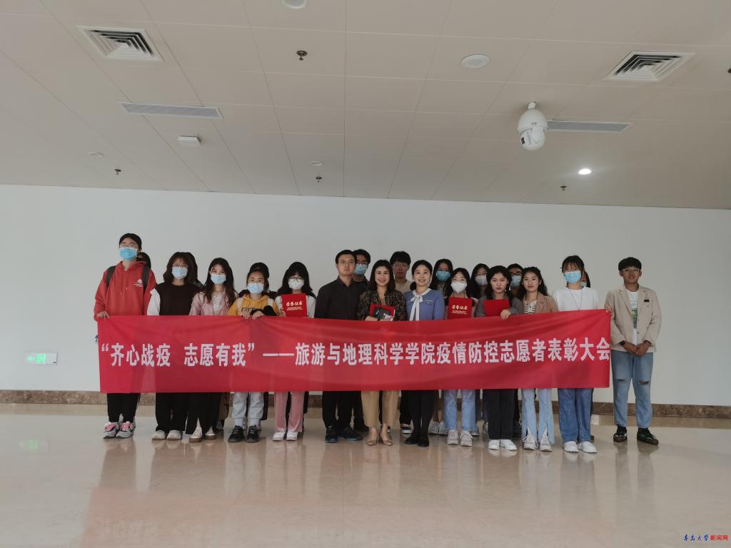 新闻网讯 近日,旅游与地理科学学院在浮山校区双子楼A座509室举办“齐心战役,志愿有我”疫情防控志愿者表彰大会。学院党委副书记于苗、学工办负责人周昱宏、院团委老师刘阳出席会议,学院全体志愿者通过线上和线下相结合的方式参与本次大会。