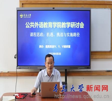 新闻网讯 近日,公共外语教育学院在睿思楼202举行了“课程思政:机遇、挑战与实施路径”教学研讨会。学院党委书记刘海荣、院长国林祥以及学院教师参加会议。