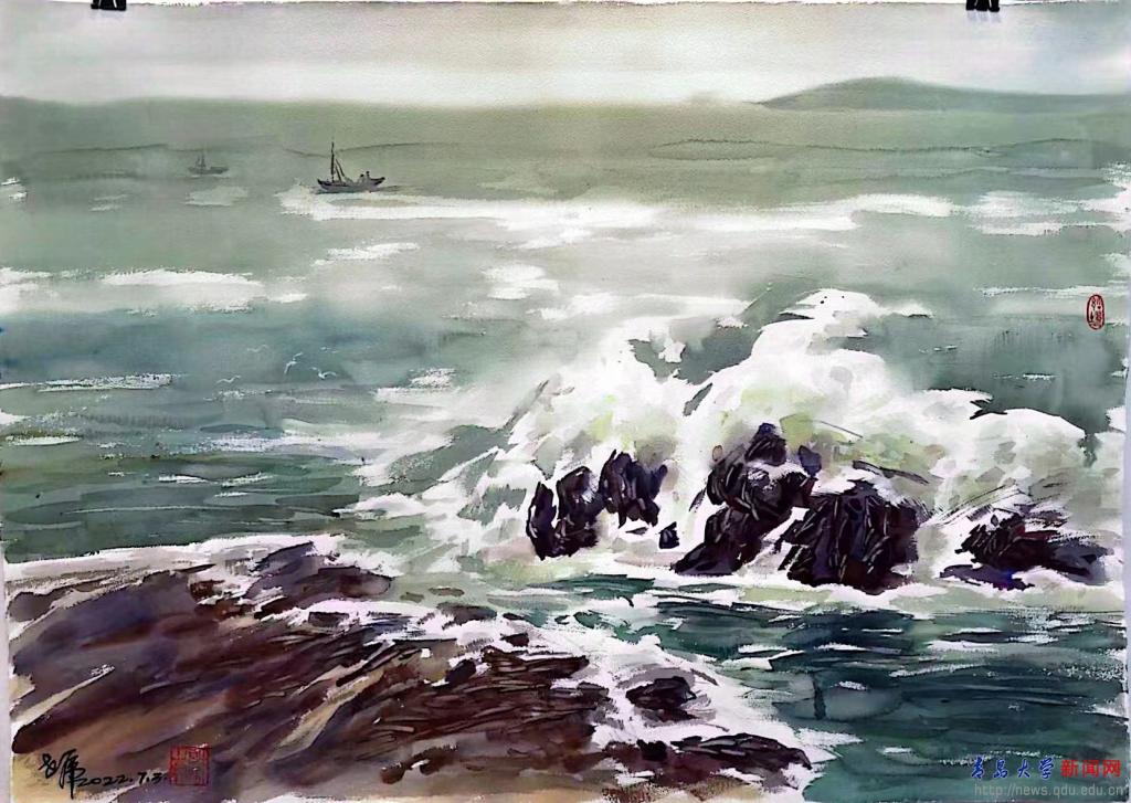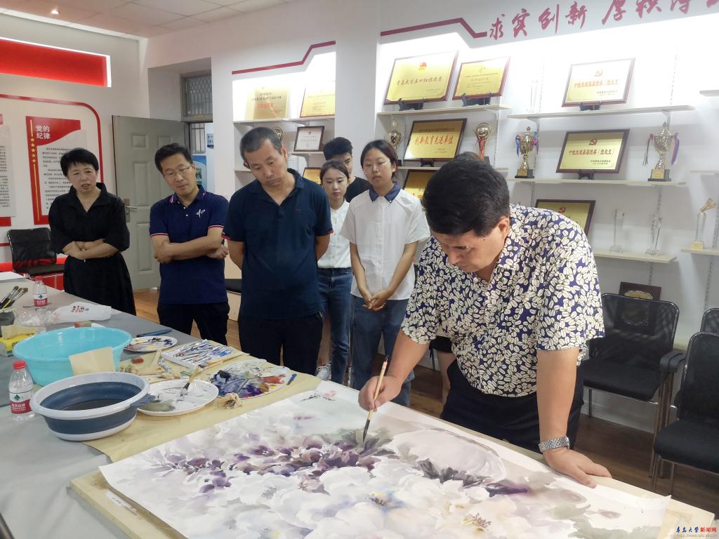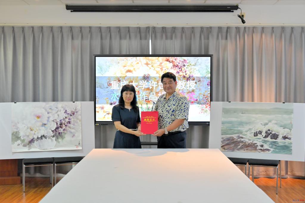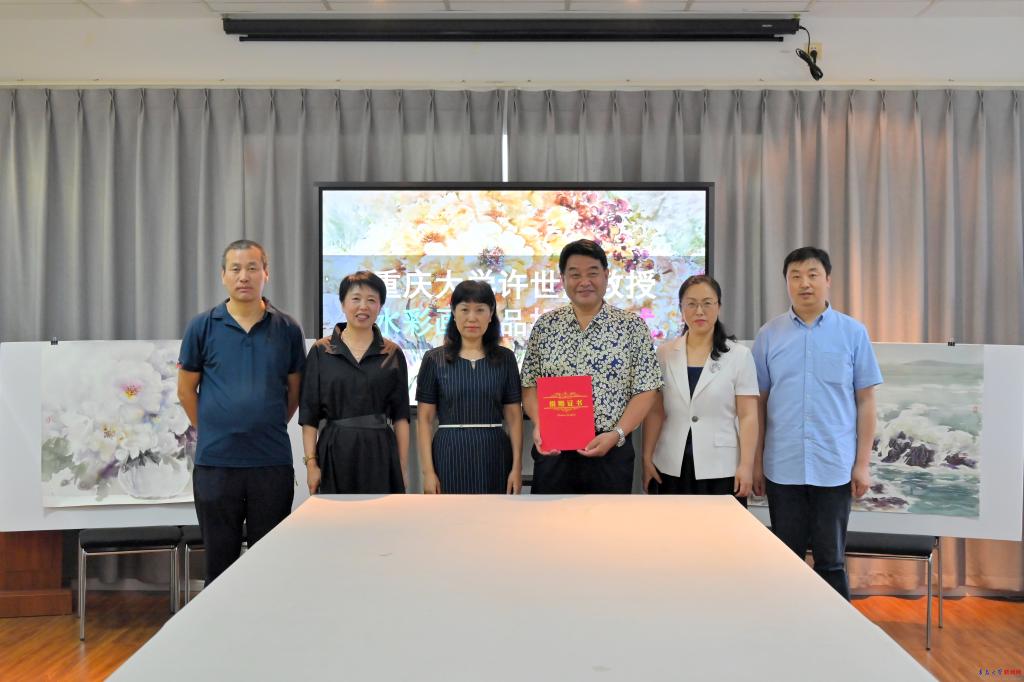 新闻网讯 7月4日下午,应机电工程学院邀请,中国当代艺术名家重庆大学艺术学院许世虎教授在浮山校区诚思楼211会议室向师生们进行水彩画示范,通过现场创作让师生们充分感受水彩之美。许世虎教授将现场创作的两幅水彩画作品《涛声》和《盛开》作为庆祝beat365在线唯一官网合并办学30周年的礼物捐赠给学校收藏。校党委常委、副校长刘彩云出席捐赠仪式并代表学校为许世虎教授颁发了捐赠证书。