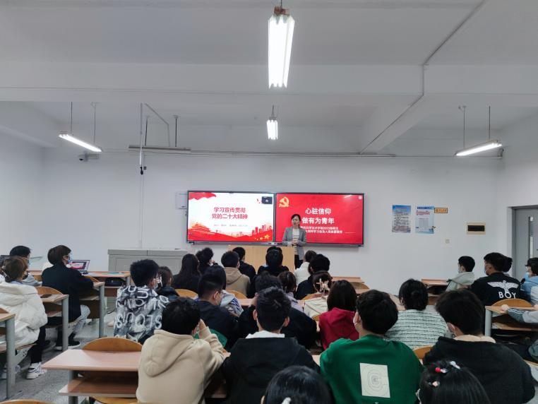 潘秋鸿围绕党的二十大的主题、主要成果,过去5年的工作和新时代10年的伟大变革,马克思主义中国化时代化,中国式现代化,全面建设社会主义现代化国家的目标任务,坚持党的全面领导和全面从严治党,应对风险挑战七个方面,对党的二十大精神作了系统宣讲和深入阐释。她详细讲解了过去5年党和国家事业取得举世瞩目的重大成就,10年间对党和人民事业具有重大现实意义和深远历史意义的三件大事,新时代10年党和国家事业发展16个方面的历史性成就和历史性变革,新时代10年的伟大变革在党史、新中国史、改革开放史、社会主义发展史、中华民族发展史上4个方面的里程碑意义。她强调,当代大学生要踔厉奋发、笃行不怠,深刻领会“两个确立”的决定,坚定做到“两个维护”,坚定不移听党话、跟党走,怀抱梦想又脚踏实地,敢想敢为又善作善成,立志做有理想、敢担当、能吃苦、肯奋斗的新时代好青年,让青春在全面建设社会主义现代化国家的火热实践中绽放绚丽之花。