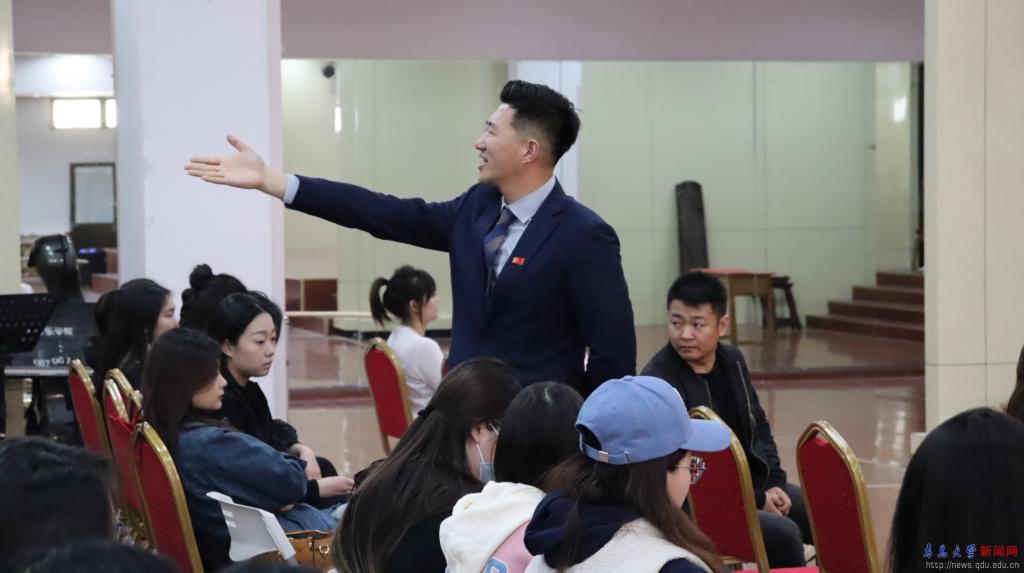 新闻网讯 为加强学校与校友的联系,助力学院学生高质量就业,4月10日,音乐学院2007级校友、青岛宝青文化运营公司总经理赵青一行受邀来访音乐学院,并为全体本科毕业生做了“扬就业之帆 启梦想之航 创阳光事业 展青春风采”的专题讲座。音乐学院党委副书记孙建华,团委书记、毕业生辅导员温丽参加活动。