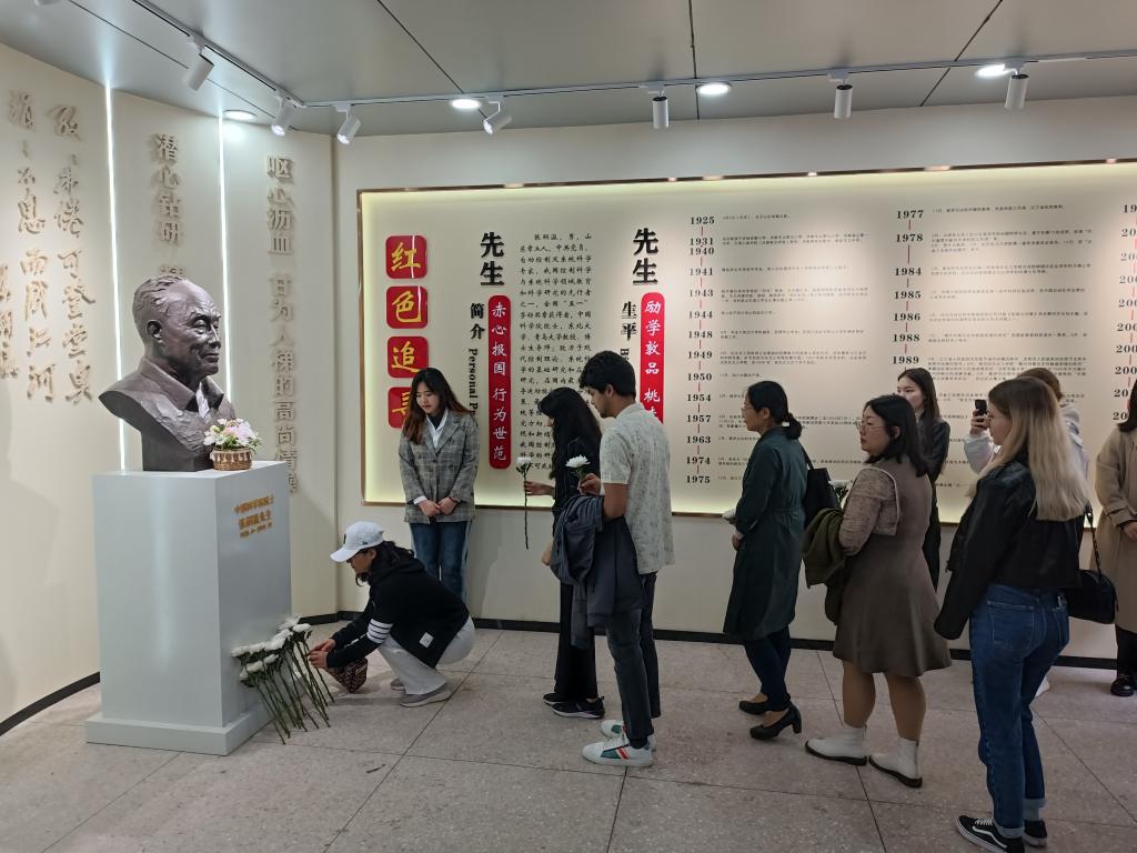 校史馆参观结束后,为学习张嗣瀛院士在爱国、治学、为师、为人方面的家国情怀和科学精神、卓越贡献与高尚情操,表达对张院士的深切怀念之情,国际教育学院师生及beat365留学生代表来到自动化学院,开展了张嗣瀛院士精神学习交流活动,在嗣瀛星火宣讲团同学的带领下进行了张嗣瀛院士精神学习和座谈交流,继续传承他精诚报国、以身许国的家国情怀和专心、专业、专注的科学精神。学习座谈会结束后,全体参会人员和留学生代表向院士雕像敬献鲜花,集体诵读致敬张嗣瀛院士的诗歌。