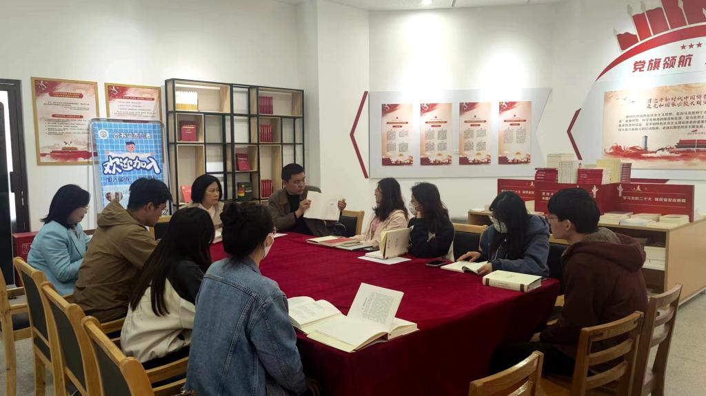 新闻网讯 4月27日,国际教育学院党委组织学院研究生党支部、院机关党支部和语言学教研室党支部的师生党员在浮山校区图书馆二楼“党史学习图书坊”开展了学习贯彻习近平新时代中国特色社会主义思想主题教育读书研讨会。