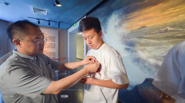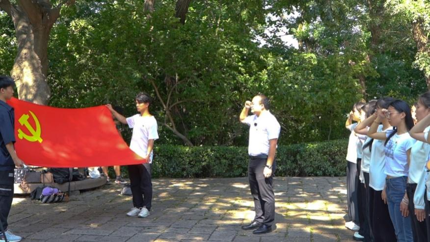 参观结束后,陈健为预备党员佩戴党员徽章,宣誓仪式上,张成带领全体预备党员面对党旗庄严宣誓。