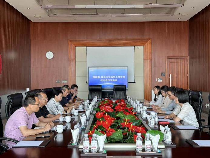 新闻网讯 为加强校企合作,进一步推进产学研融合发展,6月15日下午,机电工程学院党委书记牟晓燕一行前往青岛特锐德电气股份有限公司进行调研交流,商谈校企合作事宜。青岛特锐德电气股份有限公司副总裁李广智、人力资源中心总经理韩增雪、招聘部长张莹等公司代表参加了交流会。