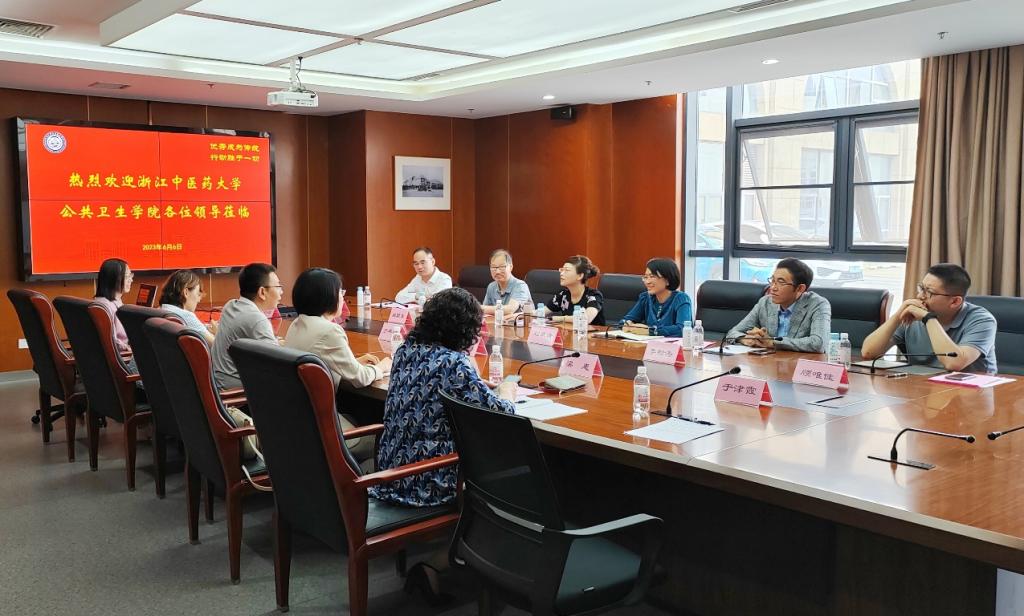 新闻网讯 近日,浙江中医药大学公共卫生学院党委书记王斌艳、院长刘翠青带领相关学系、内设机构负责人等一行6人到beat365公共卫生学院进行主题教育调研。beat365公共卫生学院党委书记贾依娜、院长郑玉新、常务副院长于典科等党政领导班子成员,及相关学系主任、副主任等教师代表参加交流座谈。