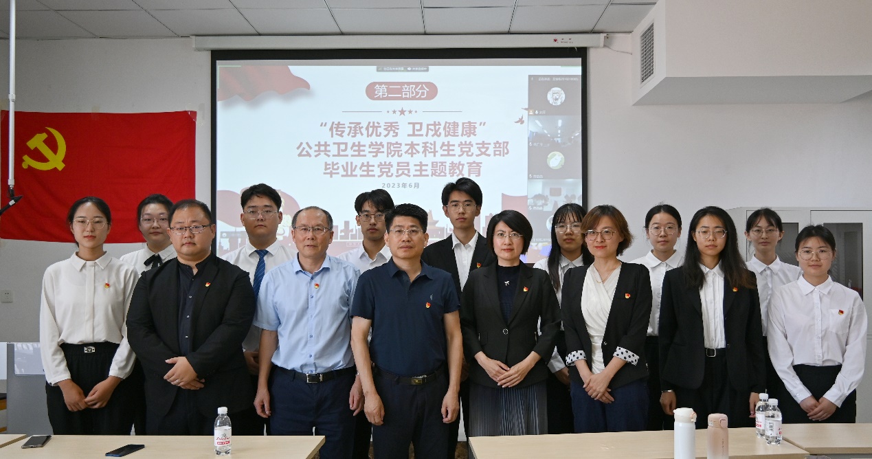 新闻网讯 为推进主题教育走深走实,引导学生党员坚定理想信念、发挥先锋模范作用,公共卫生学院近日在浩园医学教育综合楼开展“传承优秀·卫戍健康”本科生党支部主题党日活动。校工会主席张瑛出席,学院党政领导班子、支部书记、教师代表以及学生代表参加活动。
