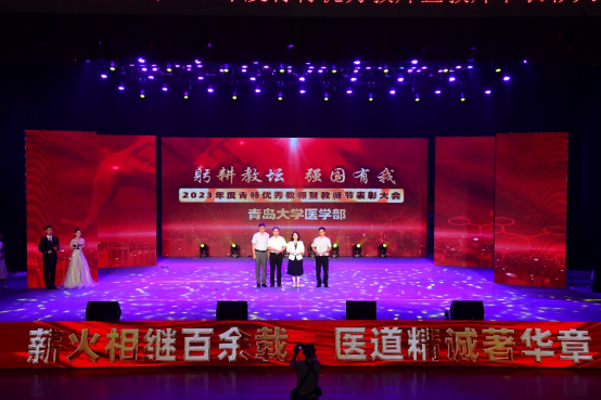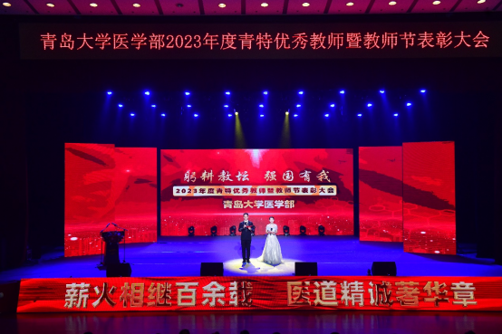 新闻网讯 9月14日下午,医学部在青大剧院隆重召开“躬耕教坛 强国有我——2023年度青特优秀教师暨教师节表彰大会”。青岛青特悦海健康产业有限公司副总经理姜皓然,学校人力资源处处长陈韶娟、合作发展处处长张燕、医学部党委书记王新生及退休老教师代表出席会议并为获奖者颁奖。受表彰的先进集体和个人代表,各学院、附属医院主要负责人,退休教师代表、新入职教师以及师生代表700余人参加大会。
