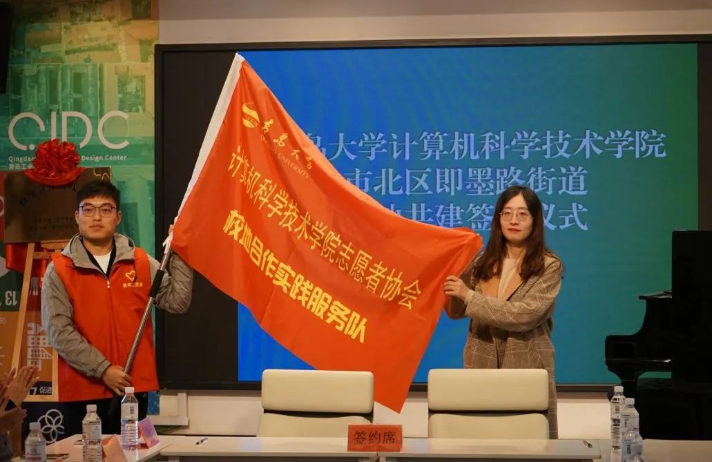 仪式上,街道团工委副书记张晓睿为计算机科学技术学院志愿者协会“校地合作实践服务队”授旗,各社区书记为共建的团支部代表颁发了共建证书。双方将积极推进志愿服务进街道、进社区、进企业、进学校,精准高效地把优质服务送到群众、学生身边,打响社区实践品牌,扩大双方结对共建的影响力和渗透力。