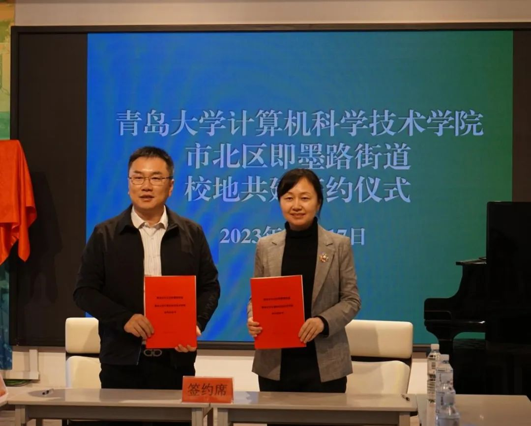 新闻网讯 11月17日,计算机科学技术学院与青岛市市北区即墨路街道在广兴里326会议室举行校地共建签约仪式。学院党委书记潘秋鸿、即墨路街道党工委书记盛建、学院党委副书记周鹏、即墨路街道团工委书记梁玉娇及学校、街道、社区部分工作人员、师生参加了签约仪式,仪式由梁玉娇主持。