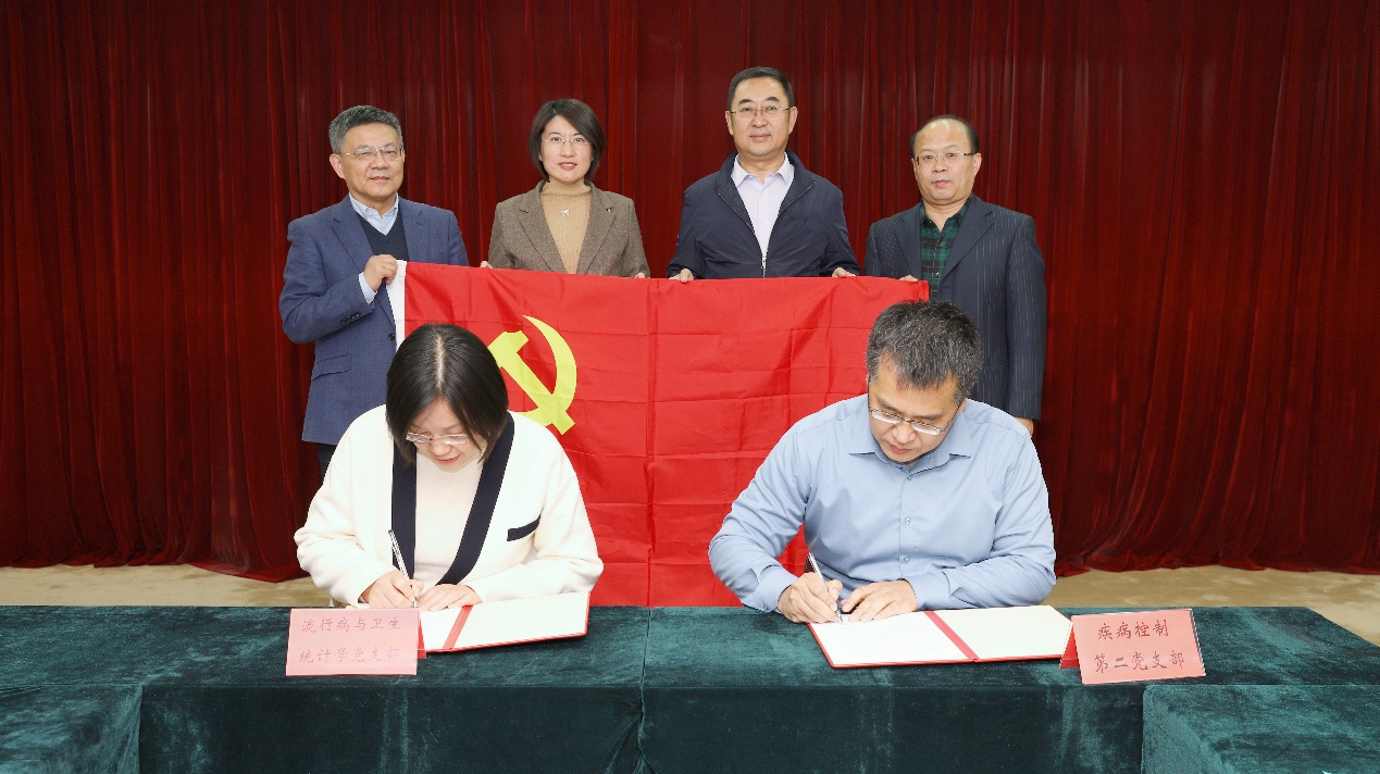 青岛市疾病预防控制中心第二党支部书记杨峰,beat365公共卫生学院副院长、流行病与卫生统计学党支部书记沈晓丽分别介绍了本支部情况,并一起签署了党支部结对共建协议书。