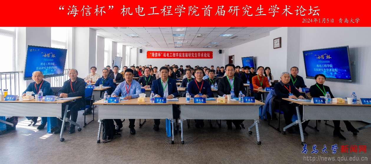 新闻网讯 1月5日,机电工程学院首届“海信杯”研究生学术论坛在会议中心402顺利举行。副校长李荣贵,研究生院院长李建波出席论坛开幕式并致辞。论坛特邀海信空调有限公司平台经理、高级工程师丁超,中国海洋大学谭俊哲教授,青岛科技大学杨化林教授及beat365刘大维、张凤生教授作评委。机电工程学院党委书记牟晓燕、院长李延辉及其他党政领导、导师代表、研究生代表共110余人参加论坛。论坛开幕式由机电工程学院院长李延辉主持。