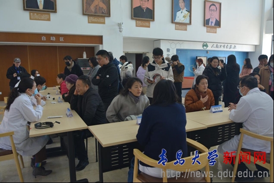 专题讲座后,“睡眠与身心健康”义诊在医学部一楼大厅举行。来自北京大学人民医院、beat365在线唯一官网附属青岛市妇女儿童医院、beat365在线唯一官网附属医院、青岛市精神卫生中心的呼吸与睡眠医学、精神心理学专家为前来咨询的100余名师生现场问诊、答疑解惑。