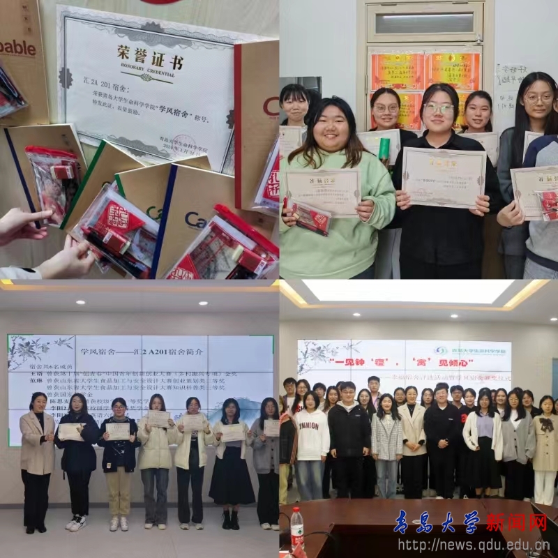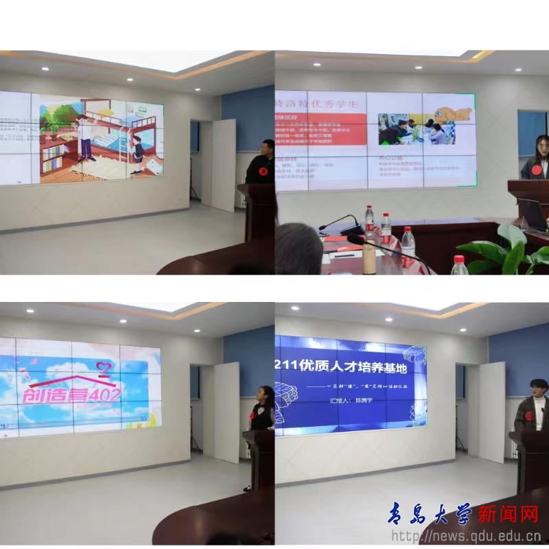 各参评宿舍通过PPT和短视频的形式展示宿舍积极向上的精神风貌,评议小组结合评委现场打分及日常宿舍卫生成绩,评选出“幸福宿舍”奖项若干。此前,为鼓励良好舍风学风的形成,学院通过学业成绩、竞赛获奖等评选出三个优秀的“学风宿舍”,在此次活动中一同进行颁奖表彰。