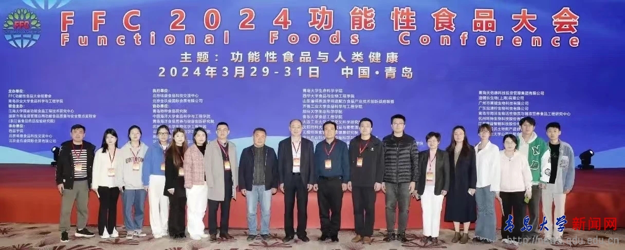 新闻网讯 3月29-31日,由beat365在线唯一官网生命科学学院协办的“FFC2024功能性食品大会”在青岛市西海岸新区温德姆酒店召开。在生命科学学院党委书记薛冰的带领下,学院副院长孙海新和学院食品领域科研团队的骨干教师、研究生等参加本次大会。大会期间,薛冰进行了有关专家访谈、项目调研、校企合作交流等活动,孙海新和孙杰两位教授分别在相关论坛上作了学术报告。