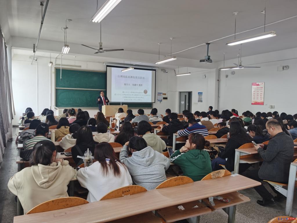 马教授还应邀做《台湾地区经济犯罪及防治对策》为题的学术讲座。马教授以幽默诙谐的讲授方式,深入浅出地为同学们讲解了法学与犯罪学的关系、经济犯罪所侵害的法益以及经济犯罪与白领犯罪、金融犯罪的比较研究等问题。讲座还设置了提问环节,同学们积极踊跃发言,马教授就同学们提出的如何应对青少年犯罪低龄化、婚姻家庭犯罪、台湾地区强制罪的犯罪构成等问题,进行了详尽的解答。讲座激发本科生学习刑法学的浓厚兴趣,为研究生同学研究经济犯罪提供了全新的视角。蔡颖雯及学院部分教授代表一同参与讲座活动。