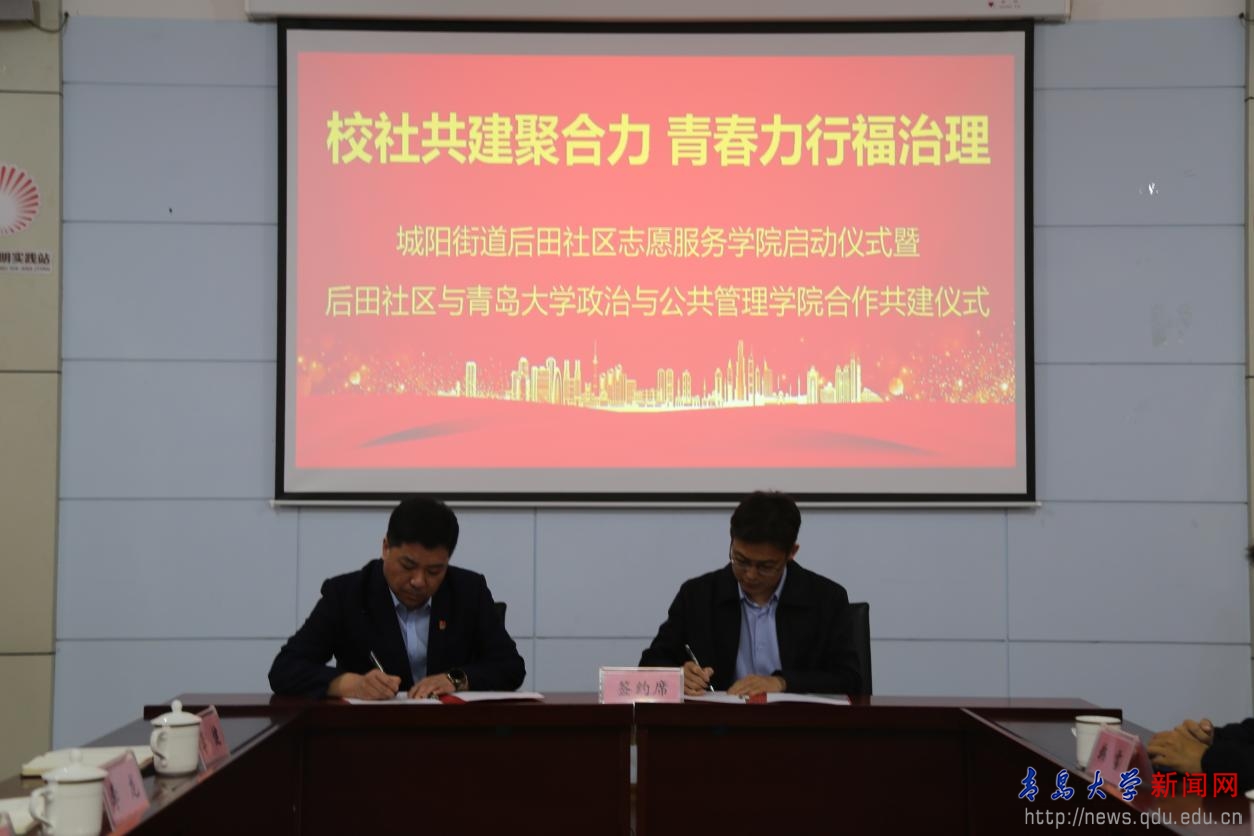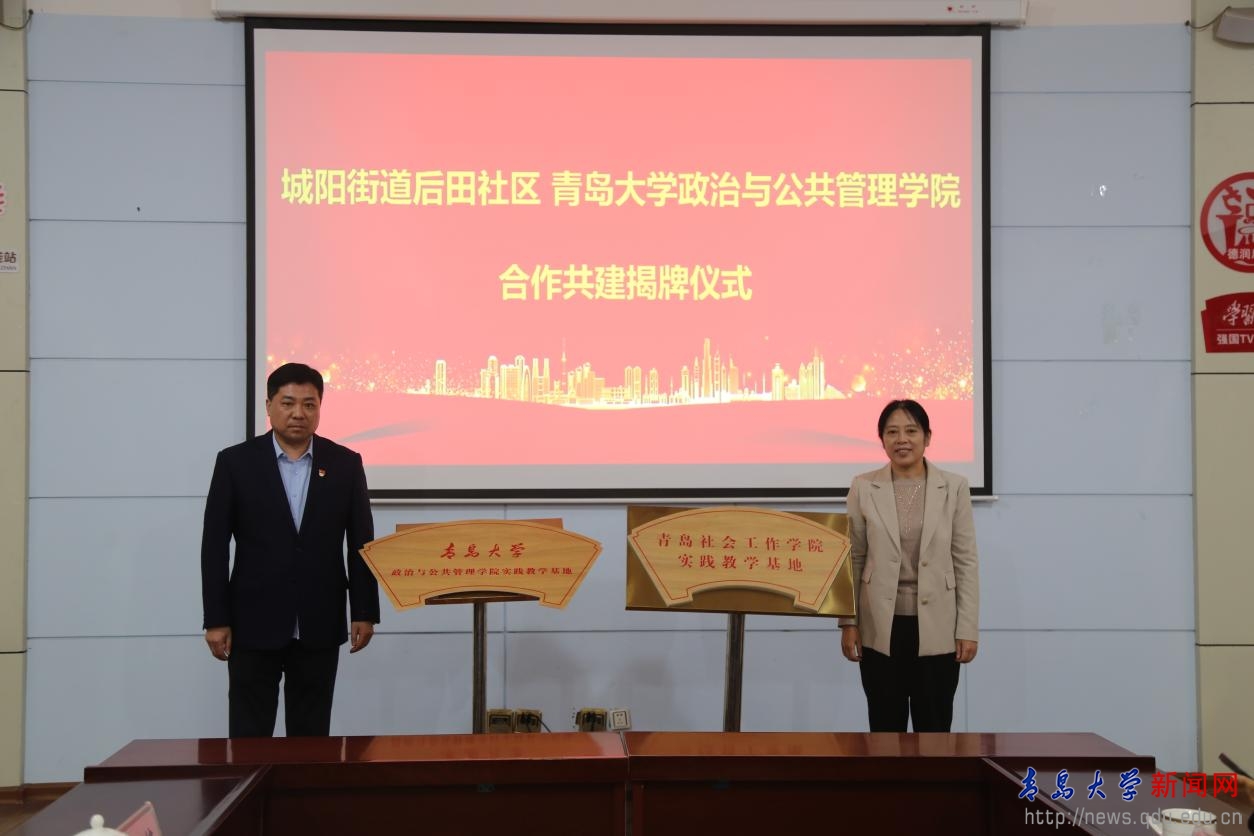新闻网讯 4月16日上午,政治与公共管理学院与城阳区后田社区合作共建签约仪式在后田社区举行。城阳区社会组织管理局负责人关忠林,城阳区慈善社工管理服务中心副主任韩雪,城阳街道综合治理中心主任、东片片长马强,城阳街道总工会专职副主席秦秋峰,后田社区党委书记、居委会主任李大林,青岛咏年楼社会工作服务中心主任杜娜以及后田社区两委成员,政治与公共管理学院党委书记隋晓玲、院长陈洪连、副院长王猛、院长助理李海荣及师生代表参加合作共建签约仪式。仪式由后田社区党委副书记李玉林主持。