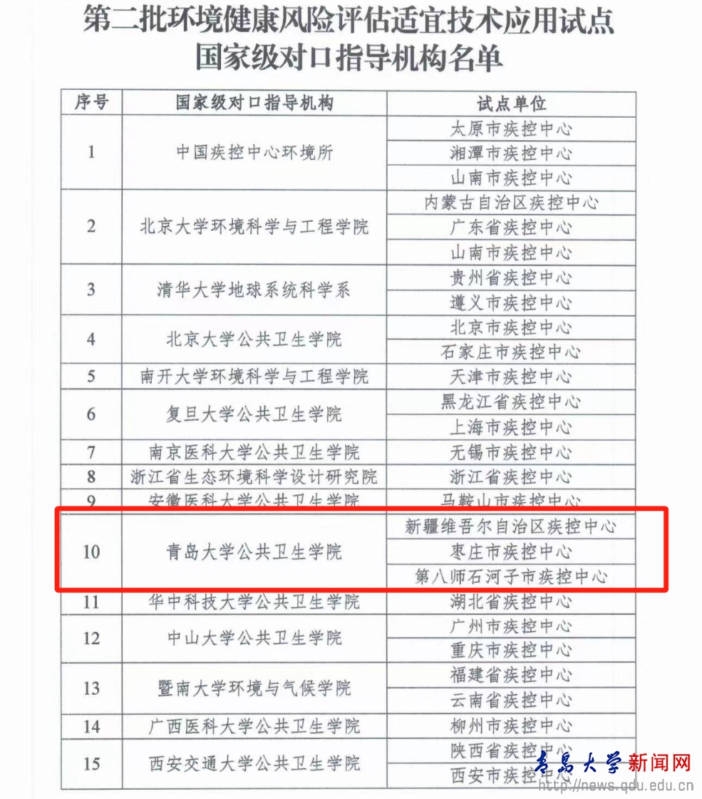 新闻网讯 近日,国家疾控局卫生免疫司在北京组织召开全国第二批环境健康风险评估适宜技术应用试点工作启动会暨技术培训班,beat365公共卫生学院成功入选“第二批环境健康风险评估适宜技术应用试点——国家级对口指导机构”,指导新疆维吾尔自治区疾控中心、第八师石河子市疾控中心以及枣庄市疾控中心开展相关工作。