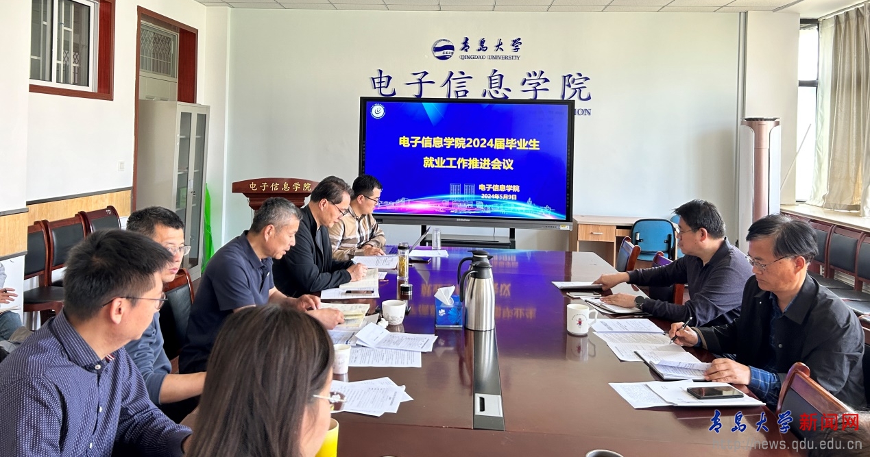 新闻网讯 5月9日下午,电子信息学院在诚思楼407会议室召开2024届毕业生就业创业推进会议,院党政领导、各系主任支部书记、毕业班班主任、辅导员参会,会议由学院党委副书记刘孝群主持。