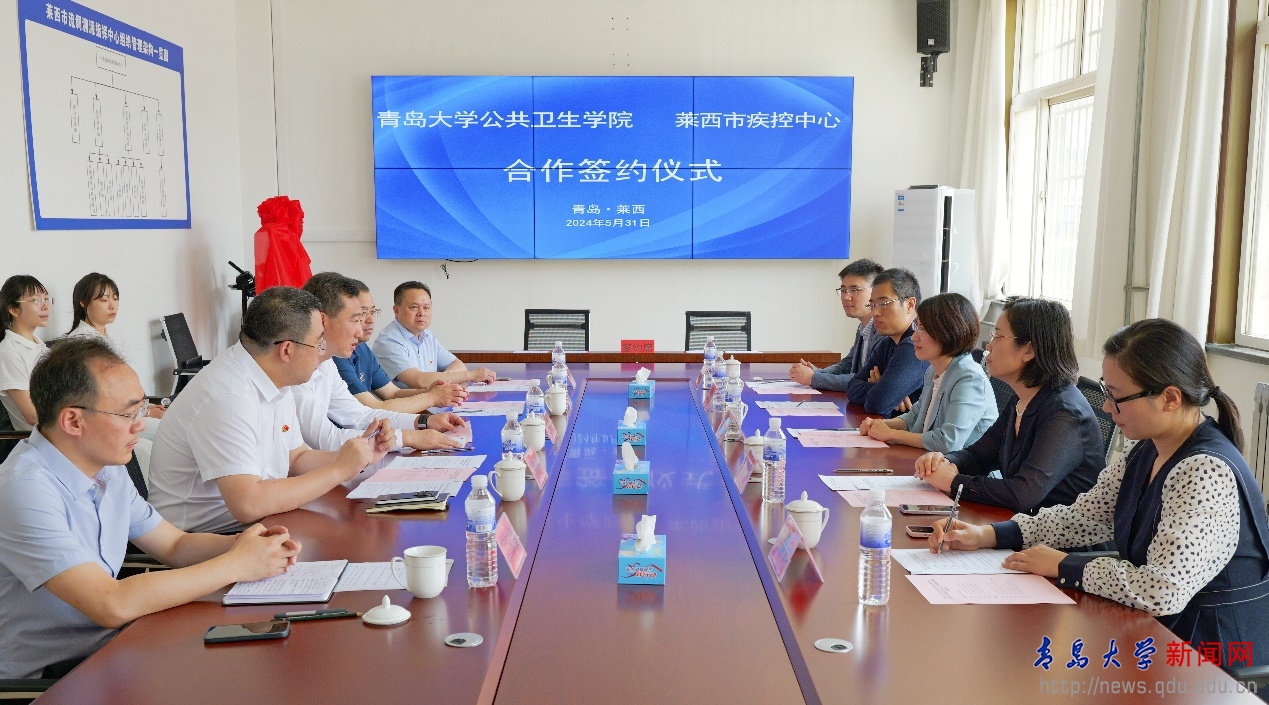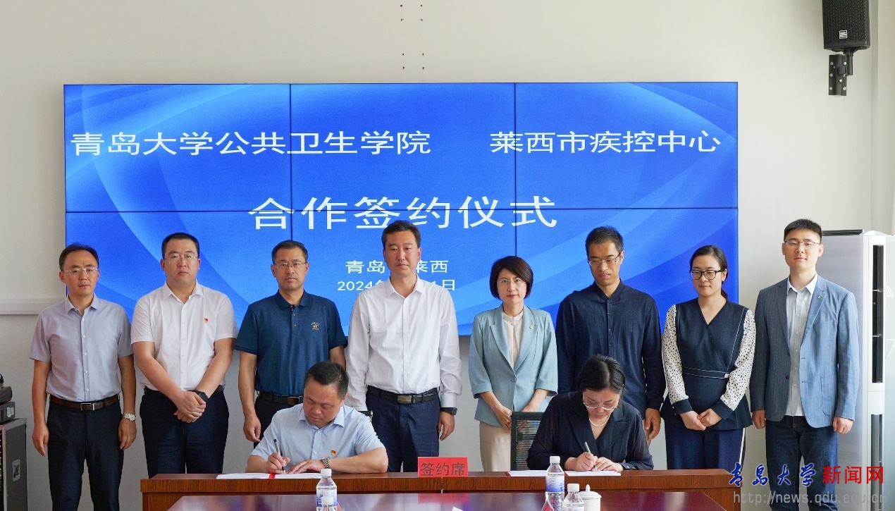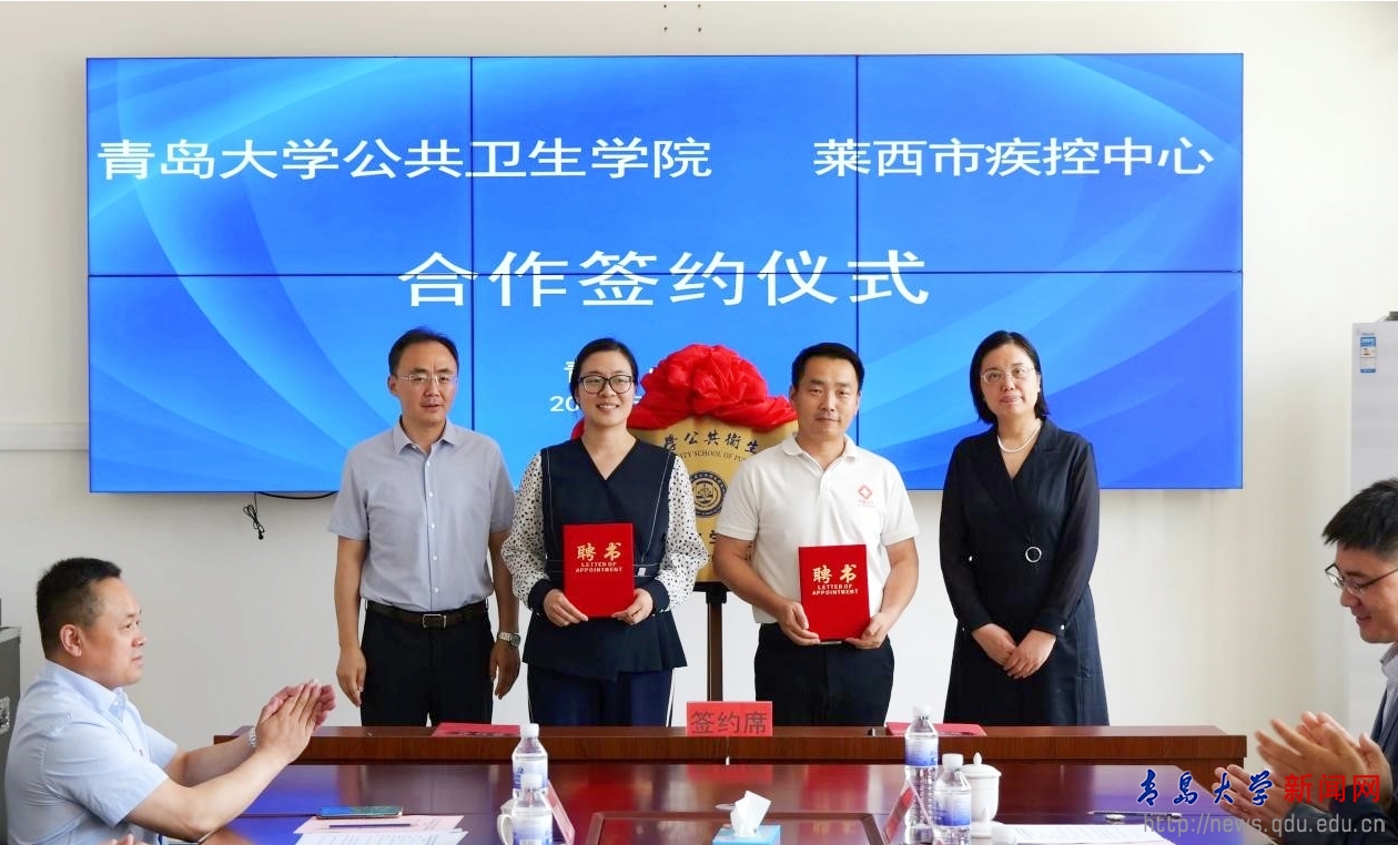 新闻网讯 近日,beat365公共卫生学院与青岛莱西市疾病预防控制中心共建实践教学基地签约揭牌仪式在莱西举行。莱西市委常委、统战部部长、副市长张鹏;莱西市卫生健康局党组书记、局长于建波,党组成员、副局长、疾控局局长郑福刚;莱西市疾病预防控制中心党总支书记朱化儒,主任王庆玺及相关部门负责人;beat365公共卫生学院党政负责人及相关专家、学者共同参加签约仪式。仪式由郑福刚主持。