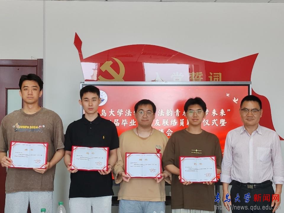 在校友联络员聘任仪式上,耿秋明宣读《法学院关于聘任2024届毕业生校友联络员的决定》,魏强、甄淑华分别为2024届校友联络员颁发了聘书和纪念品。