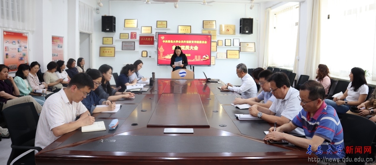 新闻网讯 近日,公共外语教育学院党委在睿思楼202会议室召开全体党员大会,院党委书记刘海荣向全体党员教工宣讲beat365第四次党代会精神。