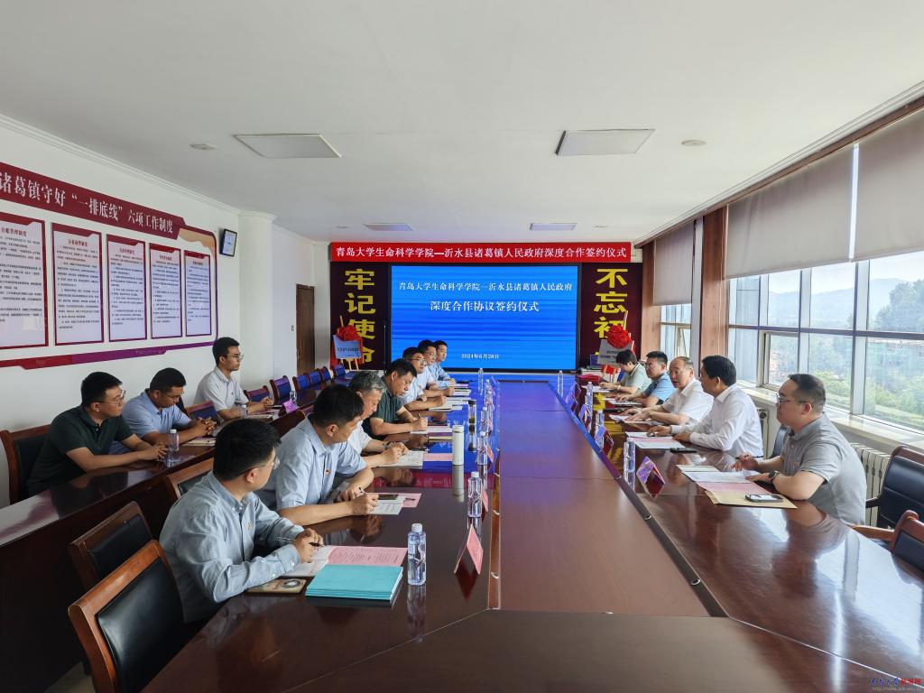 新闻网讯 为进一步学习贯彻习近平总书记视察山东重要讲话精神,坚定不移在“走在前、挑大梁”中扛牢使命担当,稳扎稳打,踏踏实实,奋力推进。6月30日,生命科学学院党委书记薛冰,副院长孙海新一行前往山东省第一书记工作队(沂水)诸葛镇出席beat365在线唯一官网生命科学学院与沂水县诸葛镇人民政府深度合作协议签约仪式。签约仪式在诸葛镇人民政府办公楼会议室举行。沂水县委副书记(挂职)王子强等出席签约仪式并讲话。诸葛镇党委副书记、镇长王培超主持仪式。
