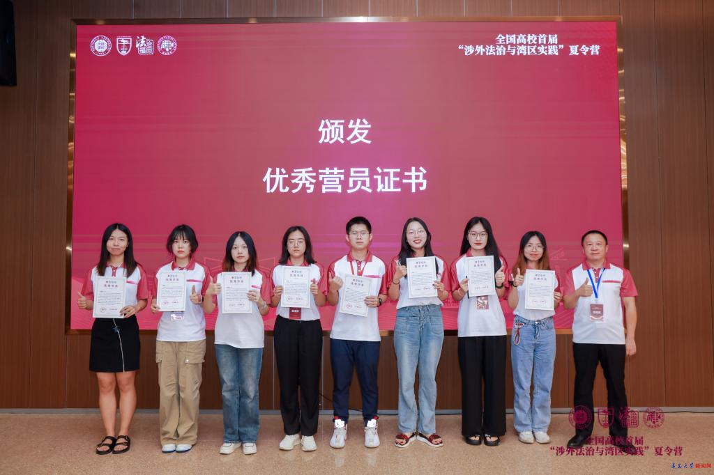 新闻网讯 近日,中国法学会法学教育研究会、涉外法治人才协同培养创新基地秘书处、中共深圳市委全面依法治市委员会办公室指导,深圳大学法学院与福田区司法局主办,深圳市律师协会及北京市汉坤(深圳)律师事务所、北京金诚同达(深圳)律师事务所、北京市盈科(深圳)律师事务所、北京大成(深圳)律师事务所、华商希仕廷(福田)联营律师事务所共同支持的全国高校首届“涉外法治与湾区实践”夏令营在深圳大学丽湖校区正式开幕,来自指导单位、主办单位、支持单位和全国51所涉外法治人才协同培养创新基地的学生、教师共计百人参加了活动。法学院选派梁玉洁同学参与了本次夏令营活动,并获得优秀营员和模拟法庭冠军队伍成员荣誉。