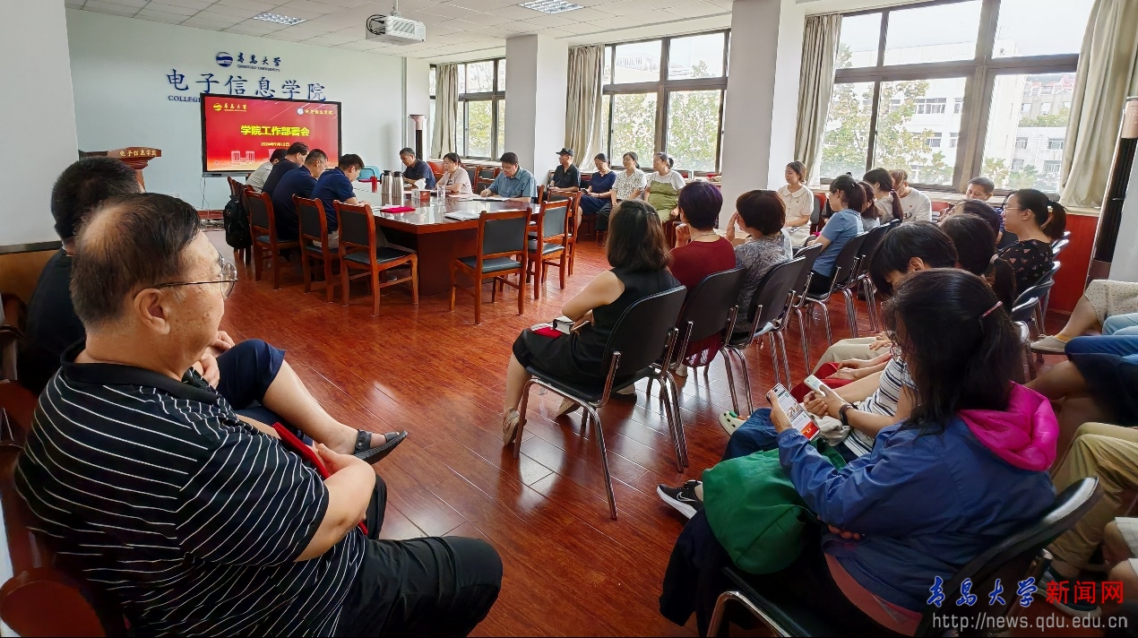 新闻网讯 9月12日下午,电子信息学院召开新学期工作部署会议,总结上学期重点工作,明确下学期工作思路,安排部署重点工作任务。学院党委书记孙丽娜主持会议,院长李山东和班子成员、全体教职工参加会议。