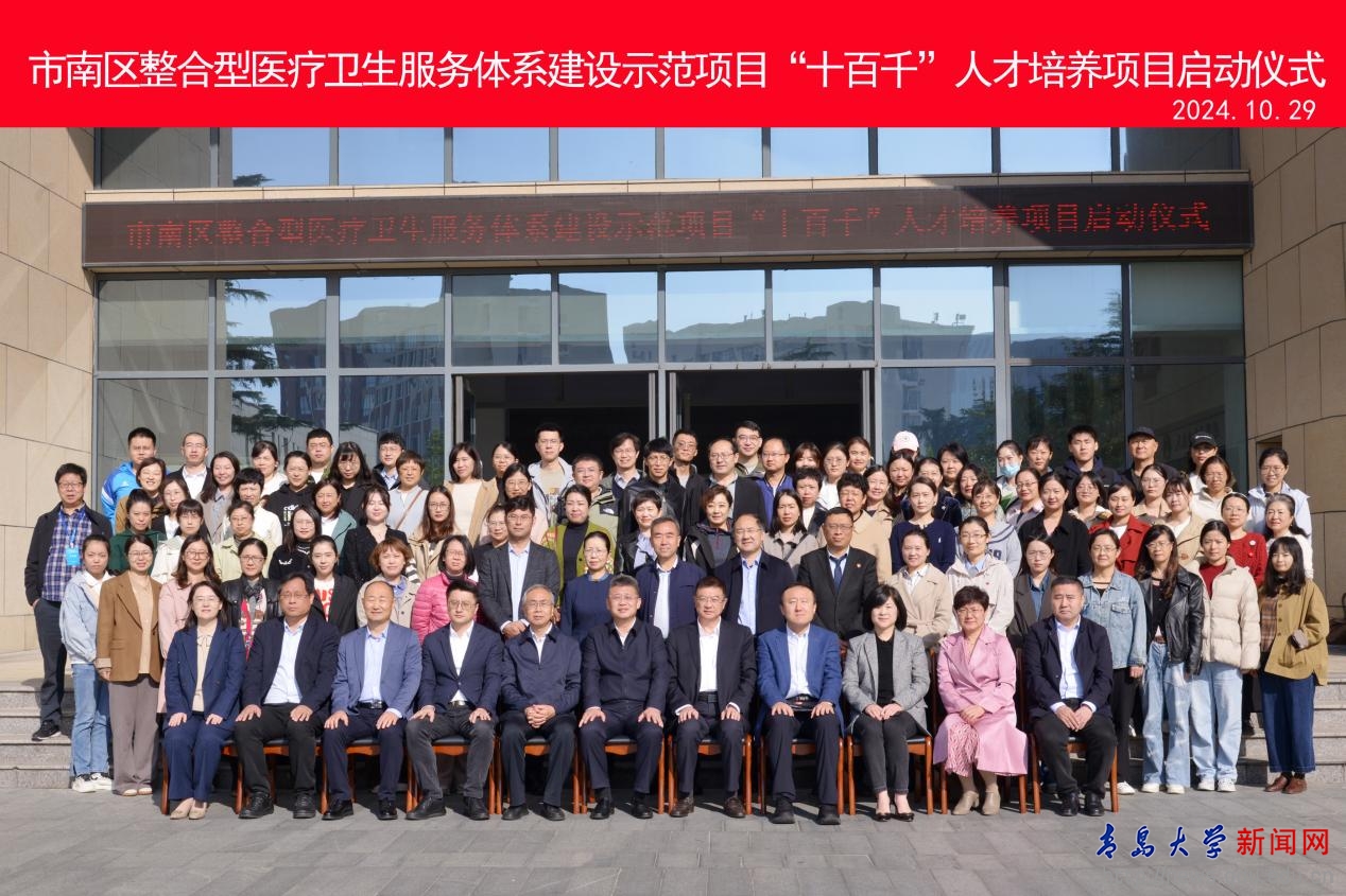 青岛市卫健委有关部门负责人,市南区卫生健康局、市南区医疗健康集团有关部门负责人,青岛医学院相关职能部门负责人,各附属医院培训导师代表、学员代表(学科带头人及业务骨干等)参加了启动仪式。